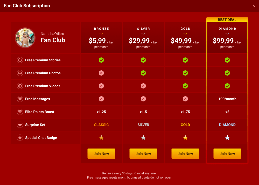 💰 4 Subscription Levels – More Options for Your Fans
